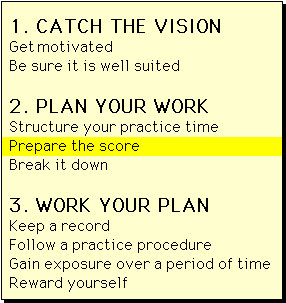 After you have decided on a structure for your practice time on a piece, it is wise to prepare the score for practice.