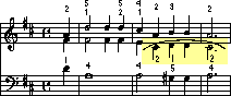 When two manual parts are notated in the treble staff and another in the bass staff, as in four-part hymns, the right hand usually plays both treble parts. However, the left hand can often help by playing some of the “inner” (alto) notes. This redistribution of the inner part between the hands makes it easier to play legato connections when there are more than two manual parts. It is similar to direct fingering in that it rarely involves crossing, glissando, or substitution, but it is more complex in that the left hand “jumps” in and out of the treble staff.
