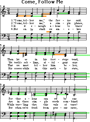 Consider this example: a note is played in one part, and then it is immediately repeated in the same part (green highlights) or in an adjacent part (common tone--brown highlights). You are faced with this choice: do you repeat the note as written, or do you tie?